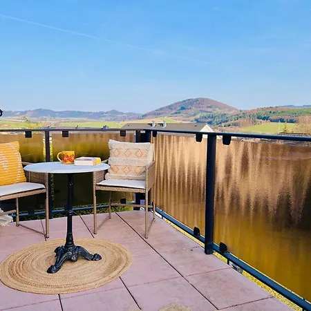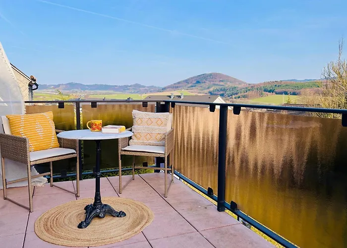 Bij Panorama Joy - Stilvolle Gemuetlichkeit Mit Weitblick Appartement kunnen gasten gebruik maken van self-catering voorzieningen, waaronder een kitchenette, en genieten van hun maaltijden in een eetgedeelte. DeAuf dem Lohe bushalte is binnen 5 minuten loopafstand. Sportliefhebbers zullen activiteiten zoals sneeuwskiën en wandelen waarderen die worden aangeboden bij het appartement. Een zonneterras kijkt uit over de berg en zorgt voor een aangenaam verblijf.